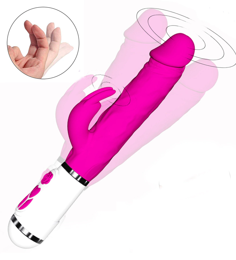 Vibrador com estimulador de clitóris em formato coelho e recarregável por cabo USB.